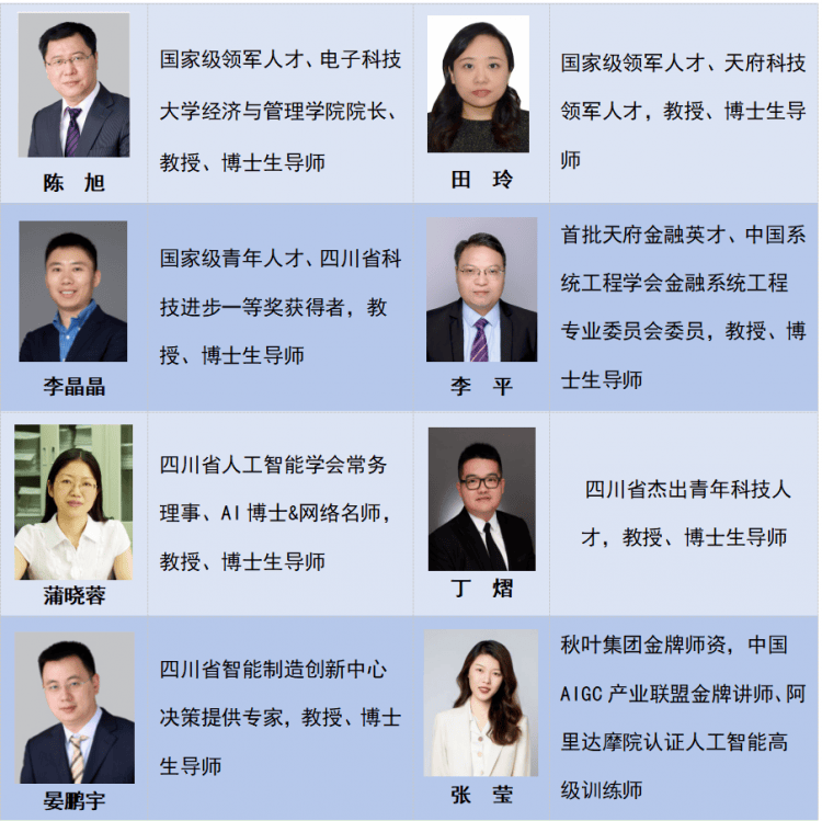 本次“人工智能+办理”高级班课程和将分为“AI前沿手艺取趋向认知”、“AI赋能立异升级”、“研学课程”等七大模块,但每期准绳上放置最多不跨越3人加入进修。电子科技大学积极响应国度“扶植全平易近终身进修的进修型社会、进修型大国”的号召,相关课程放置如下:产学研合做对接:放置产学研对接环节,查看更多从题:邀请出名校友或行业专家进行从题,